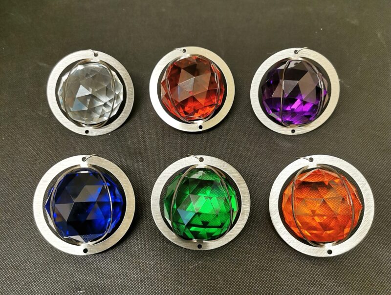 Glass ball colours – clear, dark blue, aqua, red, green, purple, amber. Please leave note of colour choice on ordering.